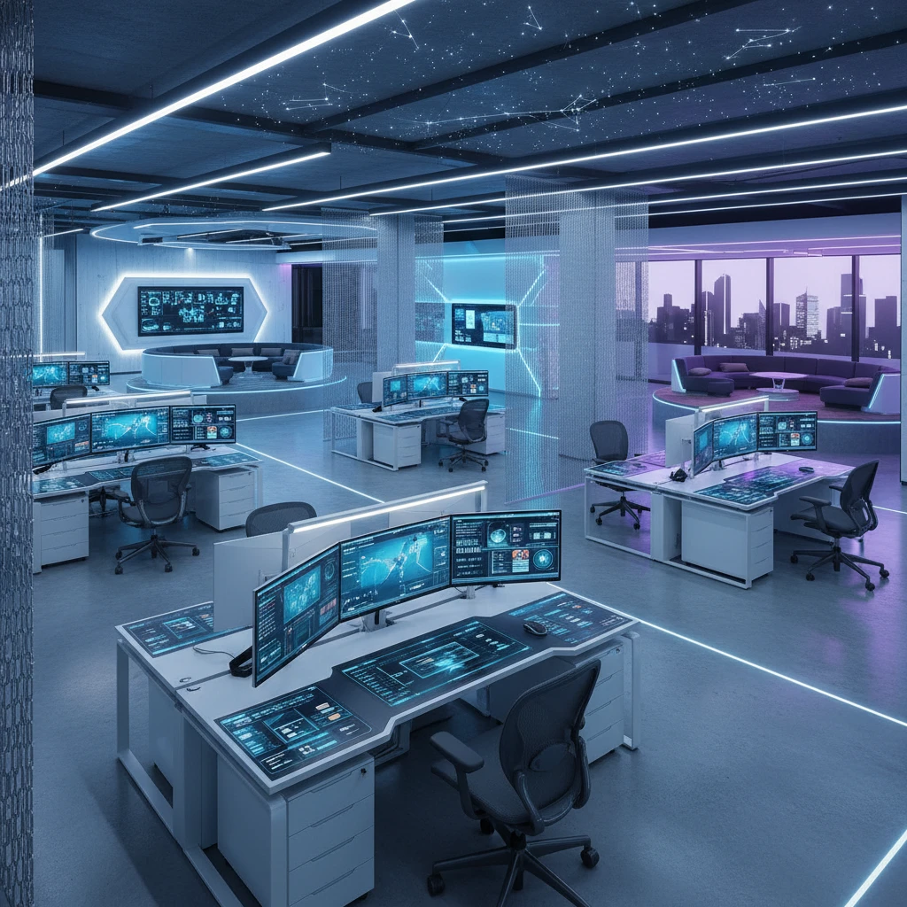 - StylesMinimalistClean lines, open spaces, and pristine white designProfessionalElegant wooden design with sophisticated atmosphereCreativeVibrant, playful spaces with unique elements for creative teamsCollaborativeOpen, bright spaces designed for teamwork and interactionSustainableNature-focused design with living walls and natural materialsFuturisticHigh-tech environment with integrated displays and modern lightingView all styles
